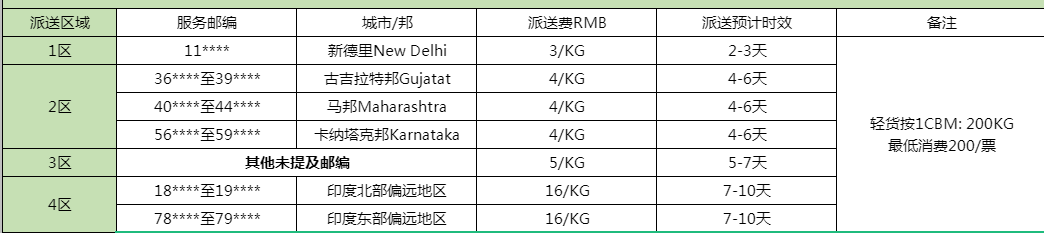 | 4:尺寸要求:单件重量超100KG或单边超2米,印度当地另收叉车费RMB200/件,单件超1000KG加收RMB600/件。 | |||||